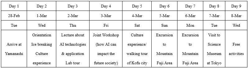 Onsite introductory AI program organised by University of Yamanashi. The second short program was held from February 28 until March 9th 2023. Since the travel restrictions have been relaxed since the spring of 2023, this short program was successfully held in UY. The participants were 36 UniMAP students and 2 faculty members.