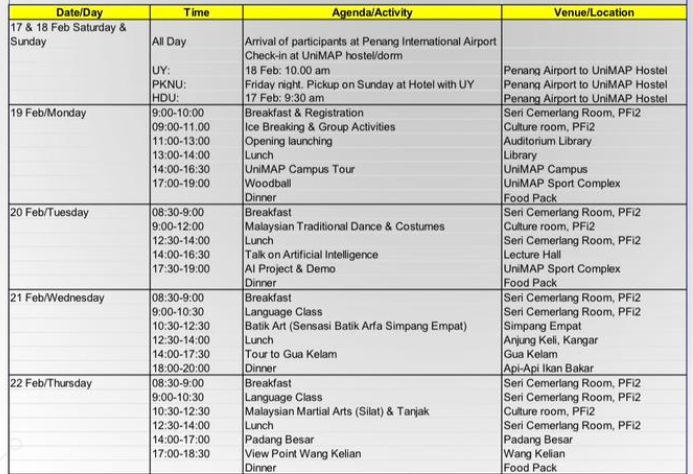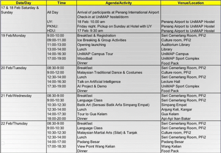 UniMAP became the host from 19 to 29 February 2024.